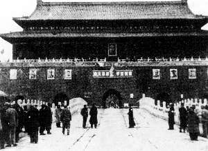 第一版天安门上的毛主席画像(北平和平解放大会会场)