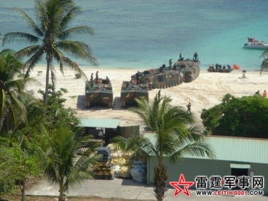 资料图:驻守在太平岛上的台军装甲车辆