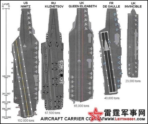 库舰与其他航母载机对比示意图
